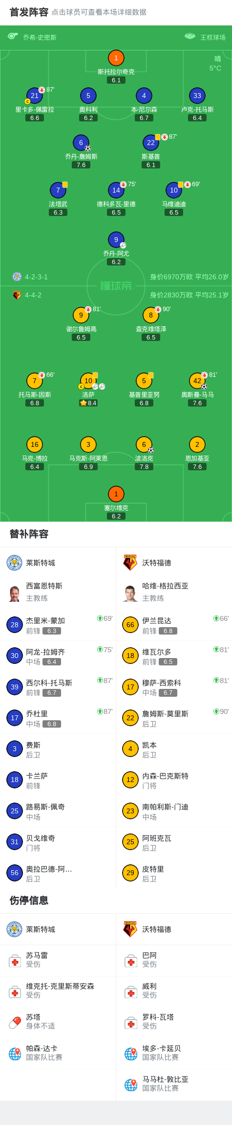 沃特福德2-1逆转莱斯特城,波洛克、奥斯曼-马马破门